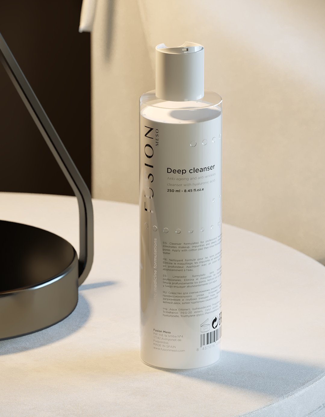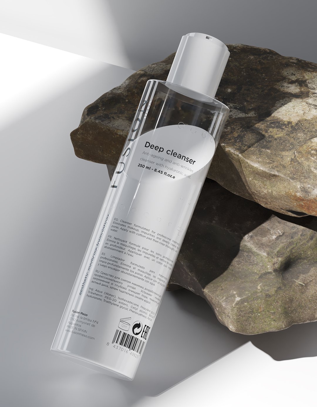 A lightweight, cooling micro-emulsion that melts away makeup and impurities while hydrating the skin. Formulated with low molecular weight hyaluronic acid to cleanse, nourish, and support skin firmness. Suitable for all skin types, including the face, eyes, and lips. Ideal for both professional use and home care.